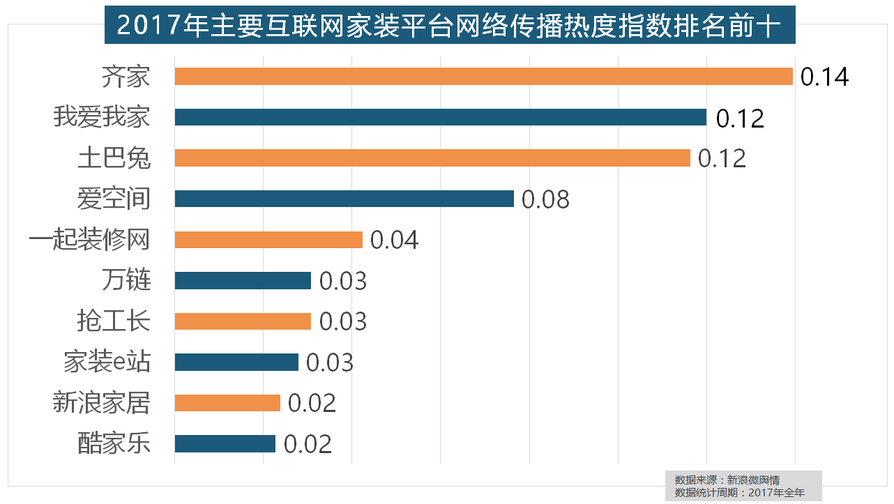 取灯具类品牌热度榜一样,据新浪微舆情对2017年我国次要家拆设想公司大数据阐发显示,“拆修”的收集热度指数为29.89,柔然壁纸、玛堡壁纸、布鲁斯特墙纸全年热度相当,万链、抢工长、家拆e坐、新浪家居、酷家乐正在年度互联网家拆平台热度榜上排名第六到第十位。收集热度指数和全网消息量同比大幅增加。2017年。